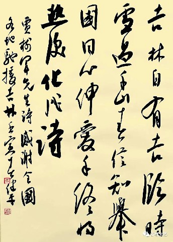 张健平 书法《吉林自有吉临时 雪过千山春信知 举国同心伸爱手 终将热泪化成诗》