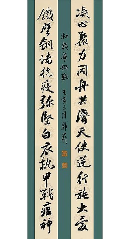 郭义 书法《凝心聚力同舟共济天使逆行施大爱 铁壁铜墙抗疫弥坚白衣执甲战瘟神》