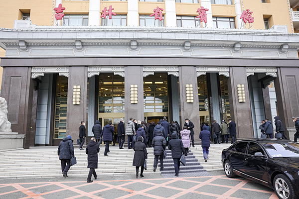 1月8日,委员们到达省宾馆主会场参加开幕会。(摄影:张金龙)